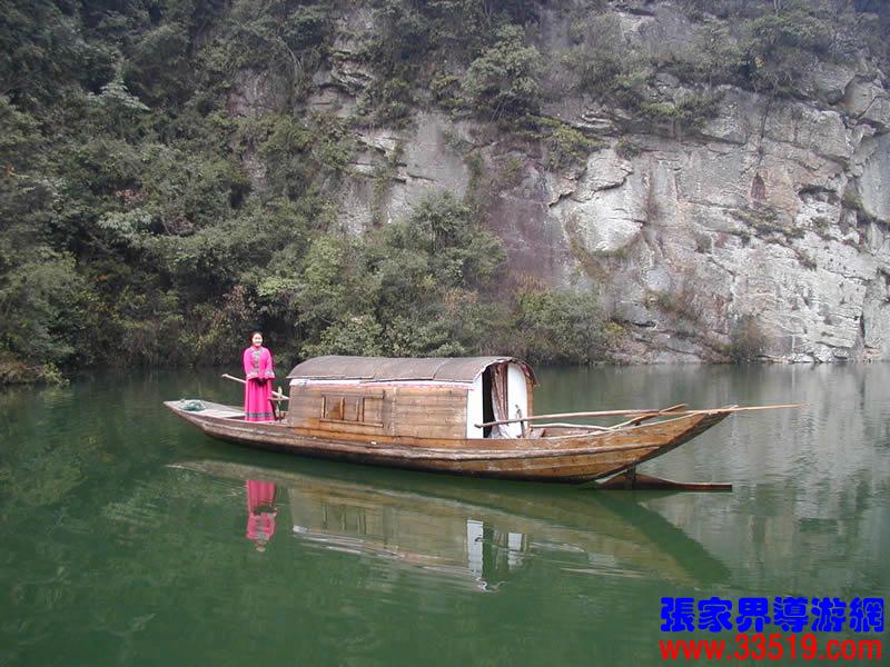 (寶峰湖)云梯直上最高層,忽見(jiàn)粼粼碧水深。果然高峽出平湖,人間瑤池此處尋。寶峰湖水深72米,湖長(zhǎng)約2華里,水闊處達(dá)150余米,狹窄處公10余米,蓄水量為400多萬(wàn)立方米。您腳下的這座水壩壩址,在我國(guó)水壩選址筑湖史上,堪稱奇跡:壩高80米,最寬處12米,最窄處僅3米。這座風(fēng)光秀麗的山湖始建于1974年,1979年建成,主要用于山區(qū)小水電和農(nóng)田灌溉。利用它做旅游風(fēng)景資源,則是從1984年才開(kāi)始的。隨著武陵源區(qū)旅游事業(yè)的蓬勃發(fā)展,這座美麗的山湖越來(lái)越為中外游客所鐘愛(ài)。