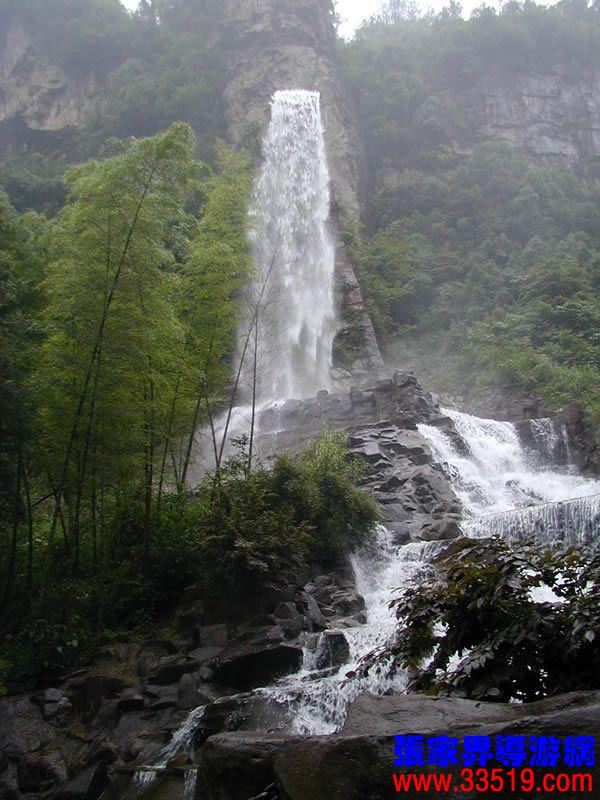 (聽(tīng)瀑樓)朋友們,寶峰湖游結(jié)束了,大家一路辛苦了。現(xiàn)在,我提議到“聽(tīng)瀑樓”歇歇腳,洗洗汗,聽(tīng)聽(tīng)音樂(lè),養(yǎng)好精神再趕路。你們看這民族式建筑,背依砂巖石峰,面朝寶峰飛瀑,登斯樓也,品土家之香茶,聽(tīng)瀑布之濤聲,此情此景,怎不令人感嘆人與自然傾心交談的空靈境界?