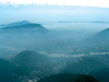 瀏陽城西約15公里神嶺一帶,三峰鼎峙,蔥青入郭,中間有一大湖,曰巨湖,其山也叫巨湖山。巨湖煙雨乃指春夏之交,清晨山頂石煙繚繞,霧入云霄,儼若雨下,變幻萬千,周忠信詞曰:“煙雨暗層巒,西望茫茫,樹墟城郭霧中看。氣涌潮心膚寸引,釀就輕寒。幾縷向空翻,數(shù)點(diǎn)飄殘,瀟湘彭蠡合奇現(xiàn)。疑是南宮傳筆意,水墨溪山。”