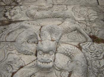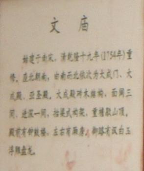 廟前面有學(xué)宮坪,亦名學(xué)坪,坪南端有大明壁。廟宇紅墻黃瓦,氣勢宏偉。正門曰奎星門,前院左右各植檜樹,常年翠綠,散發(fā)幽香??情T內(nèi)有月形泮池,池周護以石欄。泮池附近有石坊三座,正南石坊匾額鐫有“斯文在茲”四字,東西兩坊貫通街衢。通過石坊便是大成門。進門左右是飛檐綠瓦的鐘鼓亭。大成門通向大成殿,有石鋪甬道直抵大殿臺基。臺高一米,全系石塊疊成。臺階分左右兩道,中有石雕盤龍,綴以云海波濤,栩栩如生,躍然石上。大成殿為歇山式重檐結(jié)構(gòu),周圍有16根圓石柱,內(nèi)外枋、檁、藻井、斗拱、扇梧均五彩施繪,黃瓦飛檐,蔚為壯觀。殿后有亞圣殿,與大成門、奎星門前后襯應(yīng),更顯出大成殿主體的雄偉。