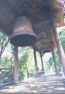 飛來(lái)鐘原為君山崇勝寺的古鐘,南宋淳佑五年(公元 1245 年),荊湖安撫制置使孟珙重修崇勝寺時(shí)復(fù)制一鐘,鐘高一丈多,大數(shù)圍,重4000余斤,上有“淳佑五年造”,鐘身上鑄有“皇帝萬(wàn)歲,國(guó)泰民安,風(fēng)調(diào)雨順,五谷豐登”16 個(gè)大字,四方凸出的部分用青銅澆鑄的四條金龍,栩栩如生,形態(tài)逼真。原鐘在1966 年被砸毀,現(xiàn)在的飛來(lái)鐘是1979 年由市閥門(mén)廠復(fù)制而成,高約2 米,直徑1.2 米,重約 2 噸。鐘身上改鑄著鐘相、楊幺起義的戰(zhàn)斗口號(hào)“均貧富,等貴賤”六字,比前者更富有深刻的含義。這口古鐘有段優(yōu)美的傳說(shuō)。相傳南宋初年,洞庭湖畔數(shù)以十萬(wàn)計(jì)的農(nóng)民在楊幺率領(lǐng)下,掀起了轟轟烈烈的農(nóng)民起義。相傳一天夜晚,朝廷派兵前來(lái)偷襲駐扎在君山的楊幺寨,忽然從天上飛來(lái)一口巨鐘,鐘聲陣陣,催醒義軍,奮起抗敵,因此叫飛來(lái)鐘。這是人們深切懷念楊幺起義軍,用各種方式來(lái)表達(dá)贊美之情。古鐘的傳說(shuō)便寄托了人們的這種心情。有人據(jù)此認(rèn)為,原來(lái)的飛來(lái)鐘系楊幺起義軍所鑄的報(bào)警器。