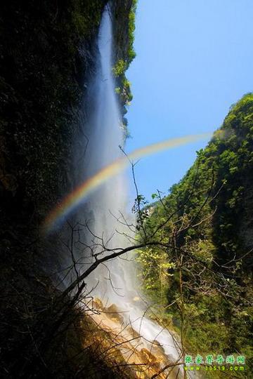 【神泉峽】有請各位朋友注意,我們行走到這里,您會發(fā)現(xiàn),峽谷在這一段猛然一下子收縮了,變得越來越窄了。這段很窄的峽谷叫做神泉峽,總長300余米。在神泉峽,我們要穿過兩處水簾瀑,請大家保護(hù)好自己的攝像機(jī)、照相機(jī)等貴重物品,以免打濕受損。同時還要注意腳下,慢慢行走,因為這一段的木板棧道很滑。