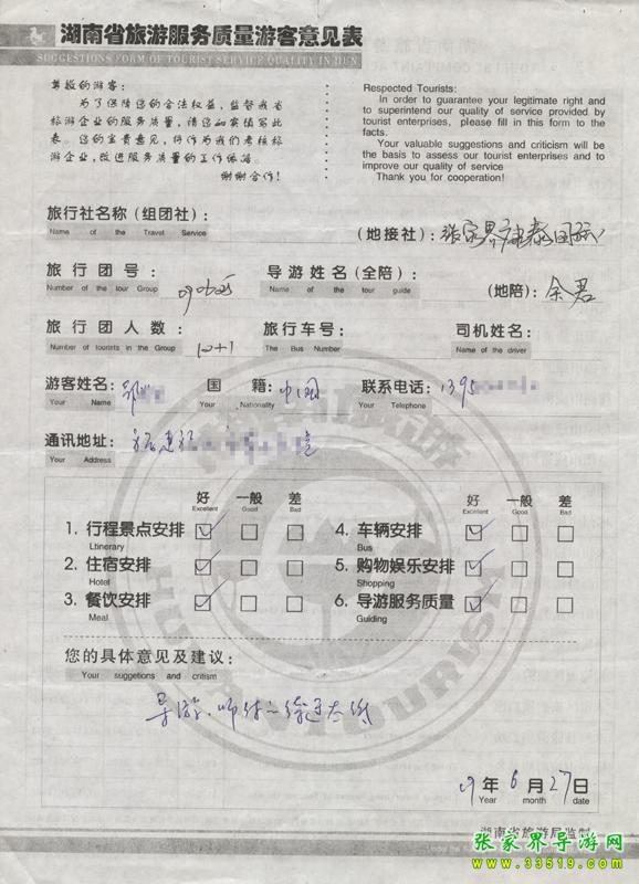 - 游客夏先生為表揚(yáng)導(dǎo)游李姣姣寫來表揚(yáng)信致我張家界... [14811]