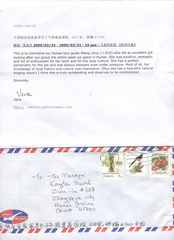 - 游客夏先生為表揚導游李姣姣寫來表揚信致我張家界... [14811]