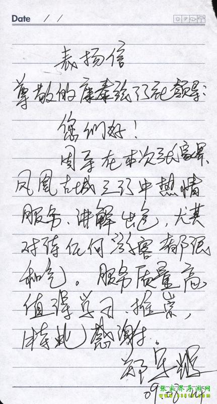 - 游客杜小姐一行為表揚導(dǎo)游陳瑤寫來表揚信致我張家... [14912]