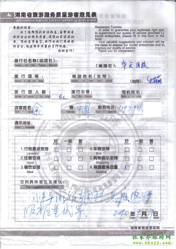 - 游客夏先生為表揚(yáng)導(dǎo)游李姣姣寫來表揚(yáng)信致我張家界... [14811]