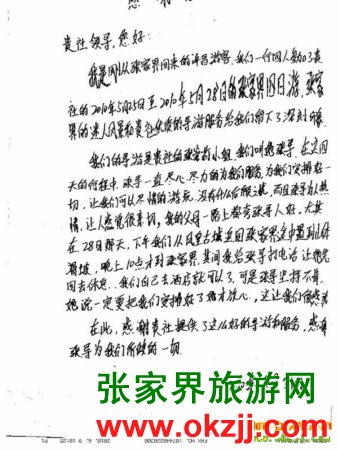 - 游客夏先生為表?yè)P(yáng)導(dǎo)游李姣姣寫(xiě)來(lái)表?yè)P(yáng)信致我張家界... [14811]