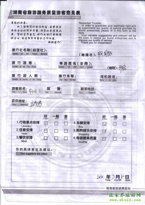 - 游客夏先生為表揚導游李姣姣寫來表揚信致我張家界... [14811]