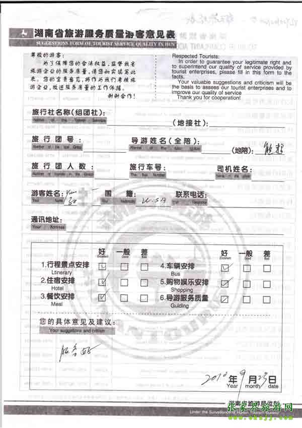 2010年9月23日美國(guó)孫小姐旅游質(zhì)量反饋:服務(wù)好