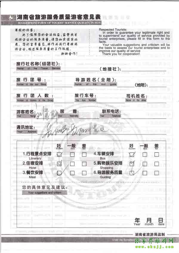 2010年8月6日岳陽(yáng)劉小姐旅游質(zhì)量反饋