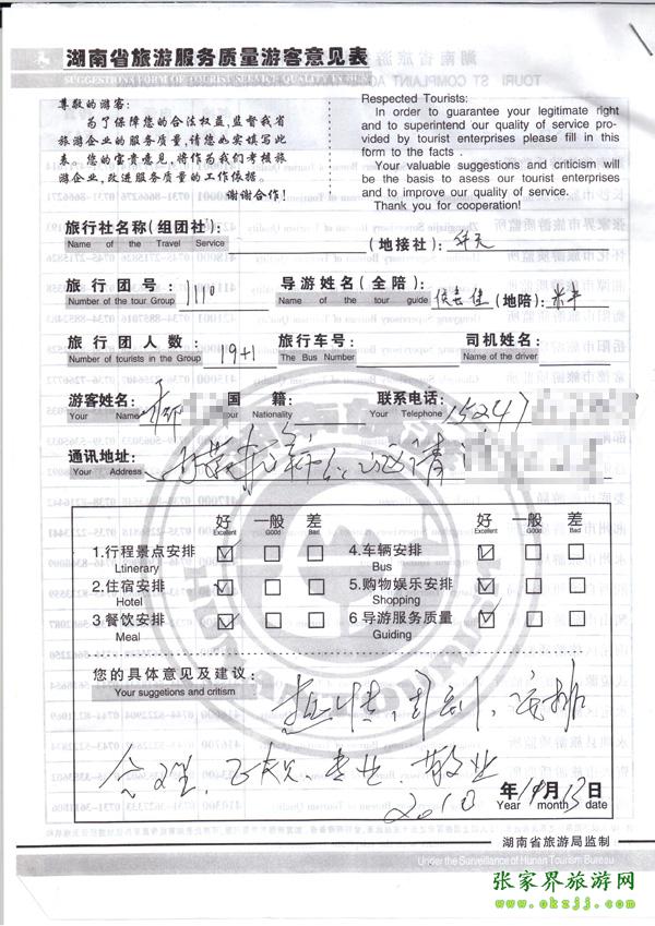 - 游客夏先生為表揚導游李姣姣寫來表揚信致我張家界... [14811]