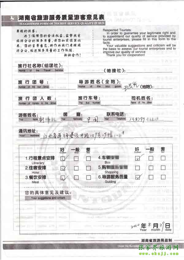 - 游客夏先生為表揚導游李姣姣寫來表揚信致我張家界... [14811]