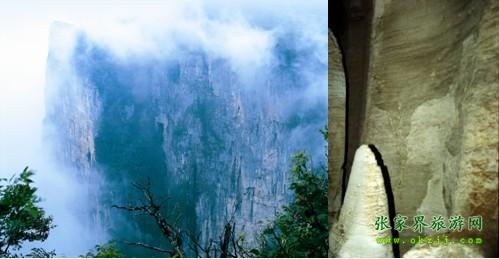 ![]() 在天門(mén)山的峭壁上,有一個(gè)方形洞口,即為天門(mén)山十六洞里最為著名的鬼谷洞.這個(gè)洞上距山頂百米,下臨深淵萬(wàn)丈,地勢(shì)險(xiǎn)峻,因鬼谷先師曾經(jīng)在此隱居修煉而得名.在“天門(mén)十景”里,鬼谷洞以“玄壁隱仙”著稱.